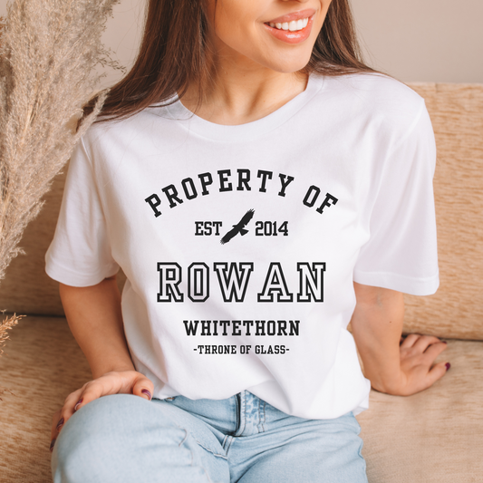 Throne of Glass Property Of Rowan Whitethorn Collegiate White T-shirt Maasiverse Merch Classic Unisex Crewneck Tshirt