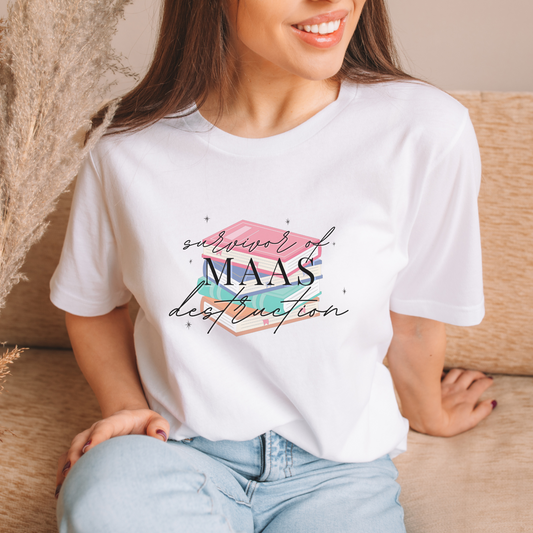SJMaas Survivor White T-Shirt ACOTAR Crescent City Throne of Glass Merch Sarah J Maas Licensed Heavyweight Unisex Crewneck T-shirt